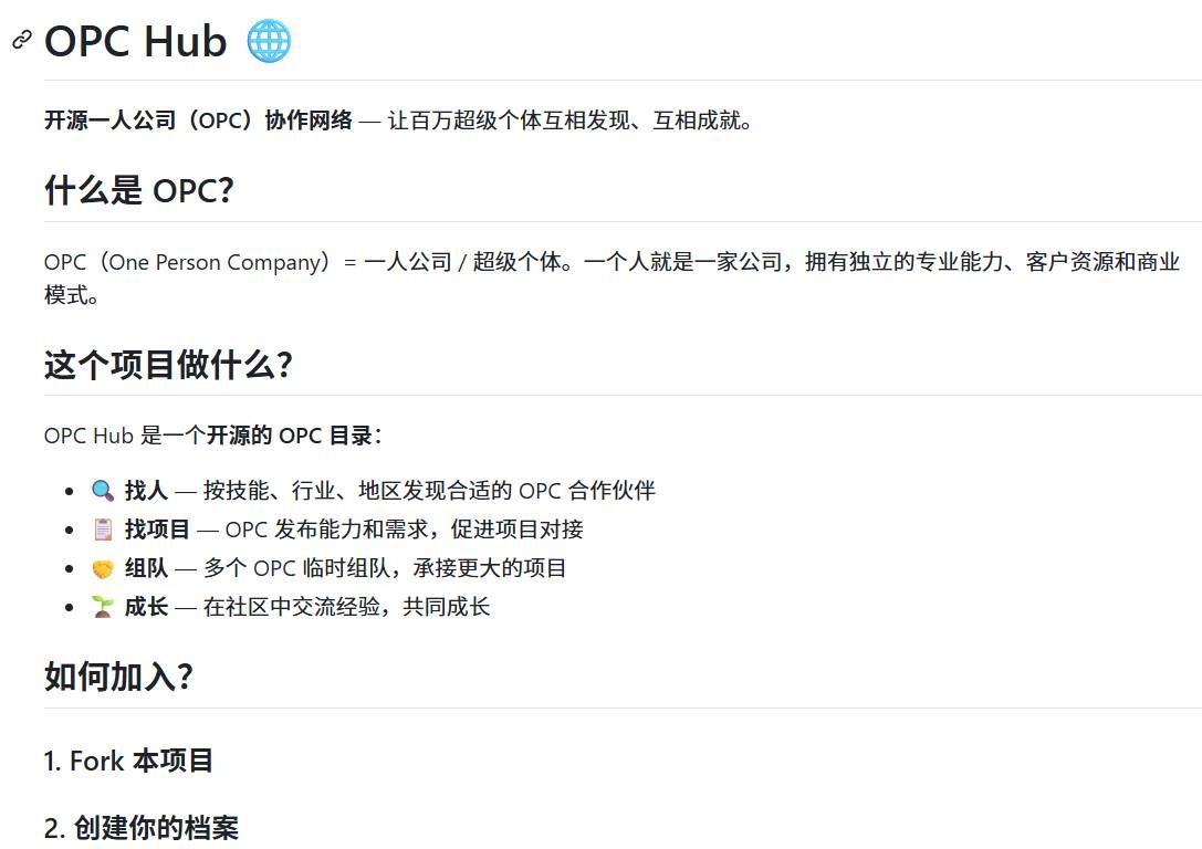 对想要创业的OPC们开源开放 在GitHub上搜 summertoo/opc-hub 按照要求提PR 想要成为共建者和审核组织的私信我