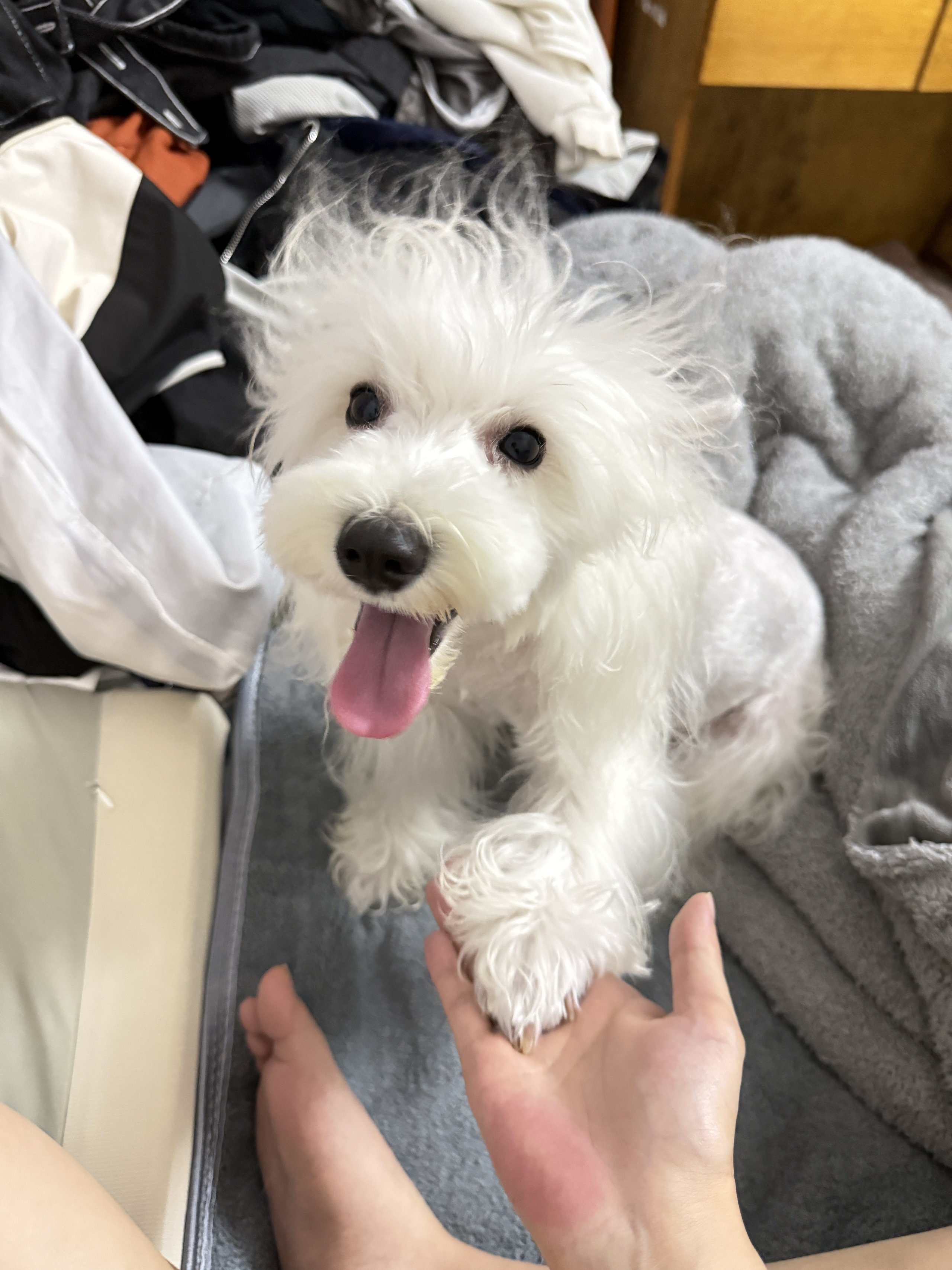 给狗子洗完澡可以上床了,它开心到爆炸头