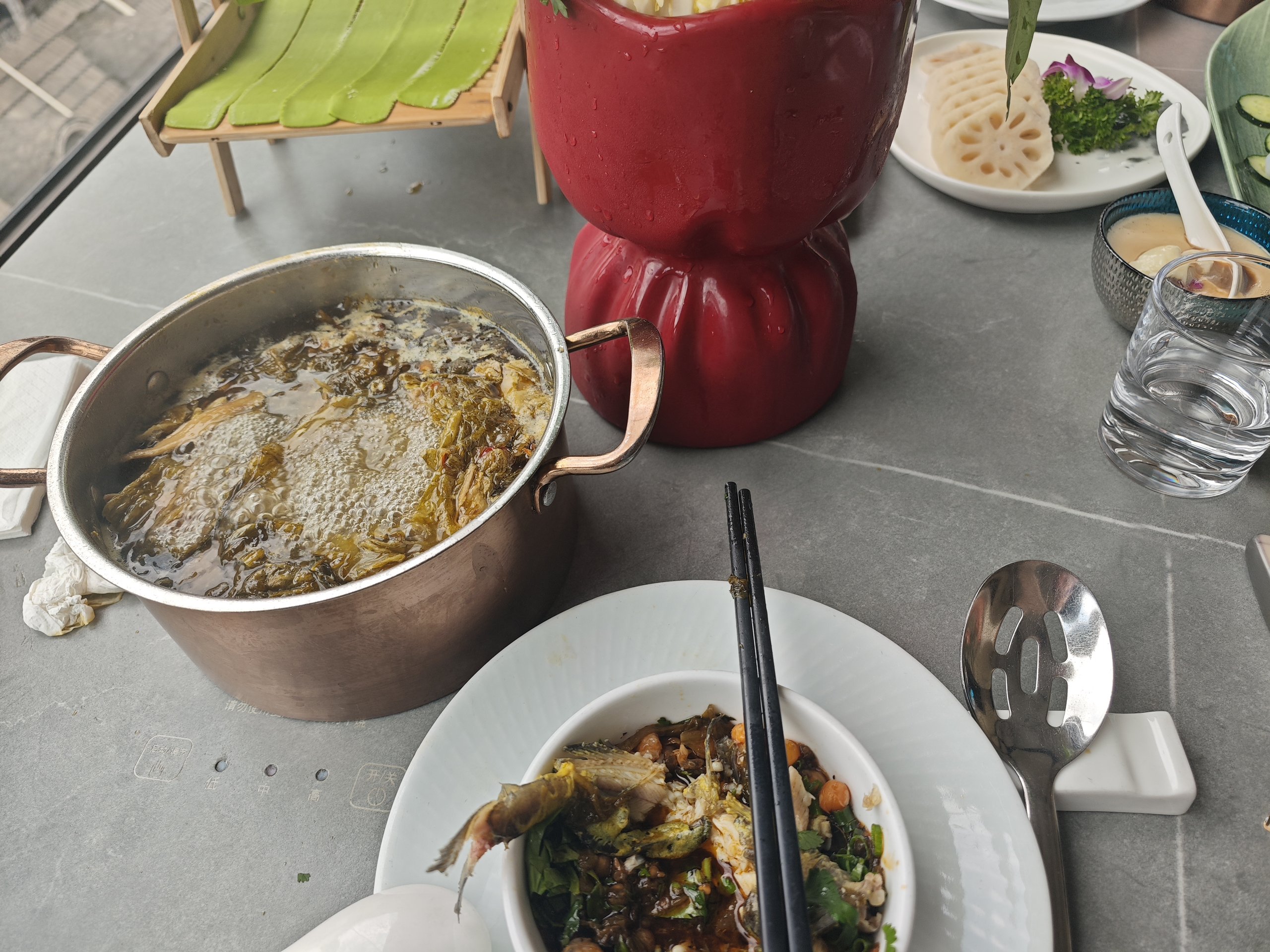 前几天去吃活鱼馆,酸菜汤锅熬的相当的滋味,配上蛋炒饭我可以吃几碗。要不要我给你们推荐地方