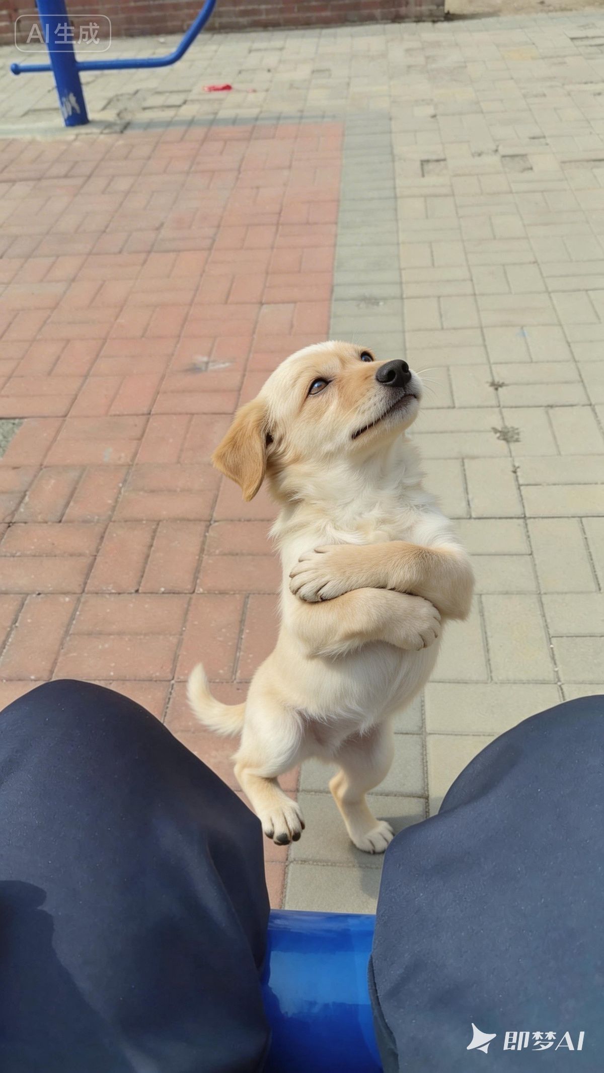 我家小狗不听话,院里一来人就嗷嗷叫唤,我耐心训它 ,虽然很生气,但还得假装没事跟它交流