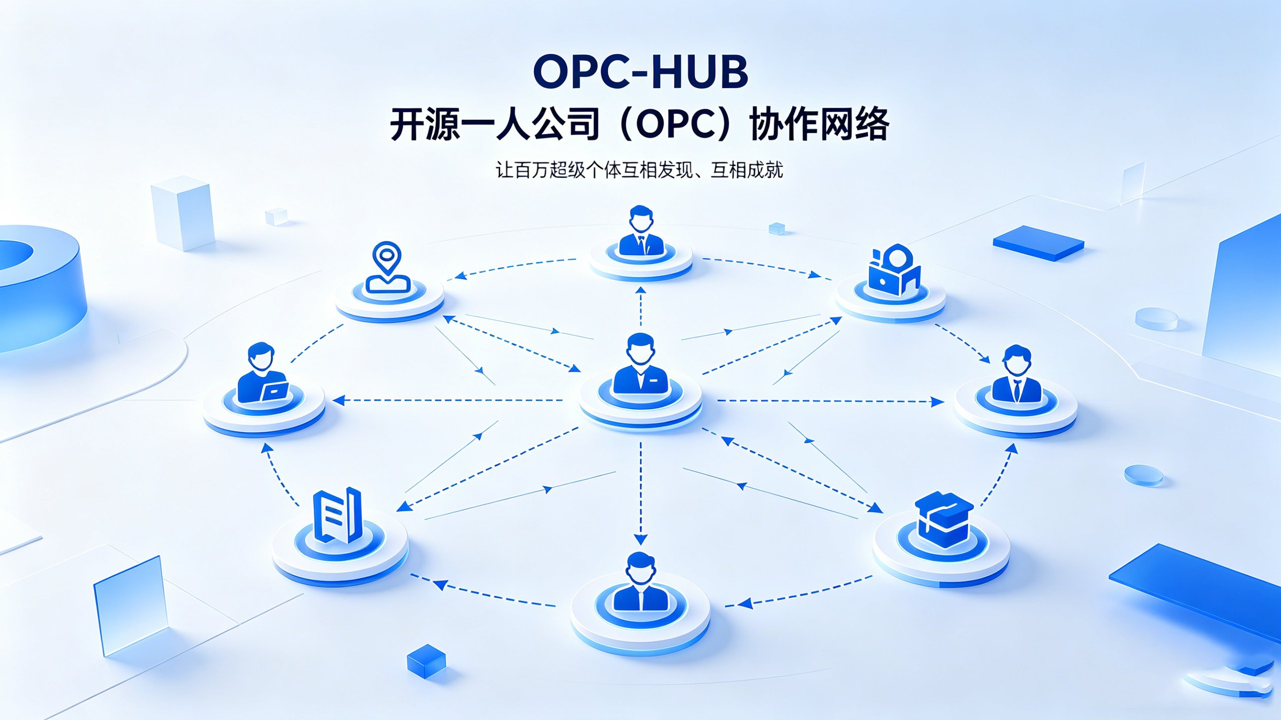 开源一人公司(OPC)协作网络 — 让百万超级个体互相发现、互相成就。 以上是假设能做成的话。。。