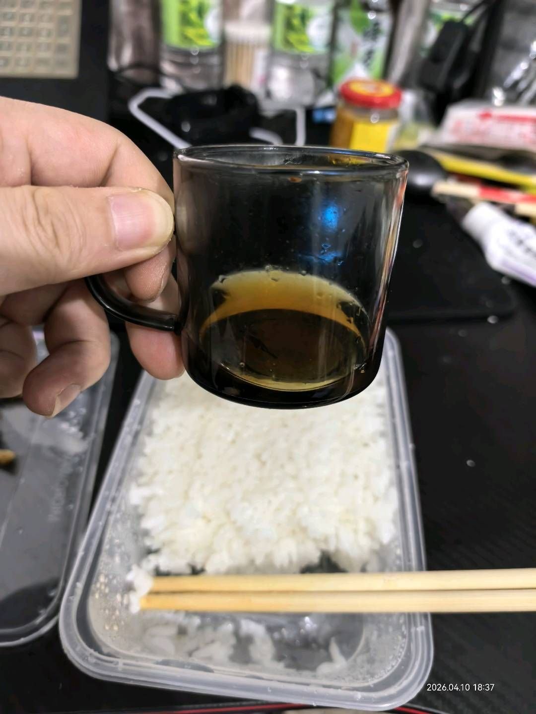 饭吃了一半,忘记喝酒了,马上倒一点劲酒,这小酒量