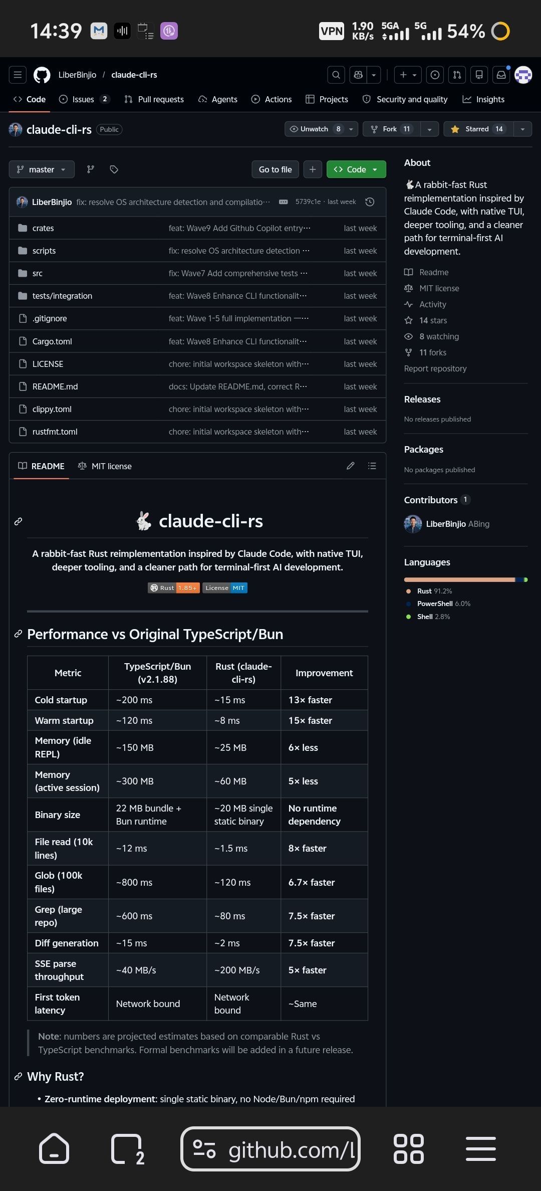 「Claude Code Rust重写性能飙升!Github集星啦!」