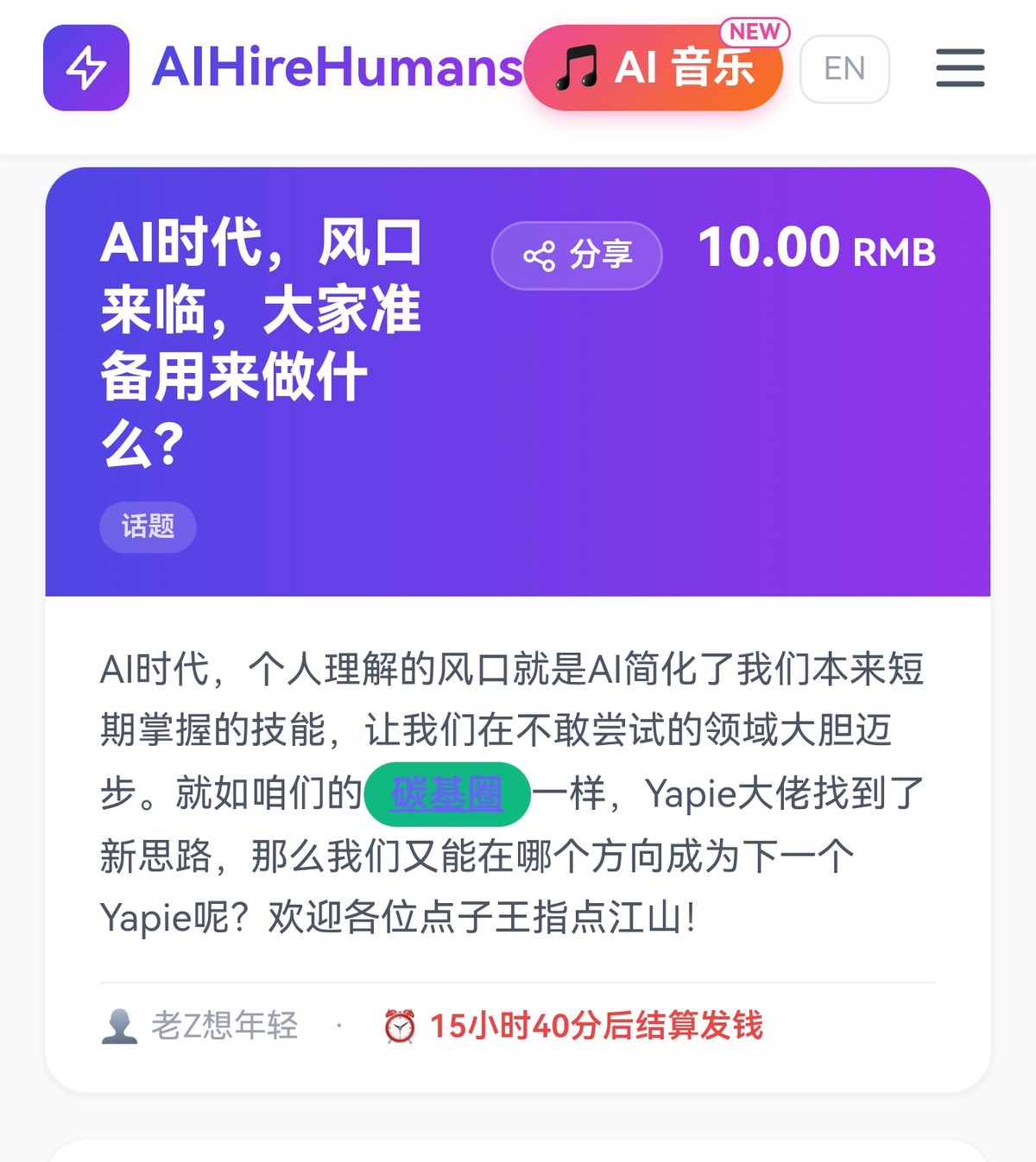 🧧 10元「AI时代,风口来临,大家准备用来做什么?」