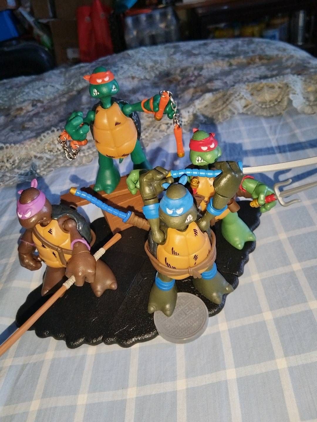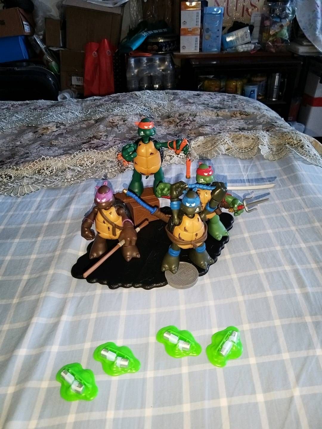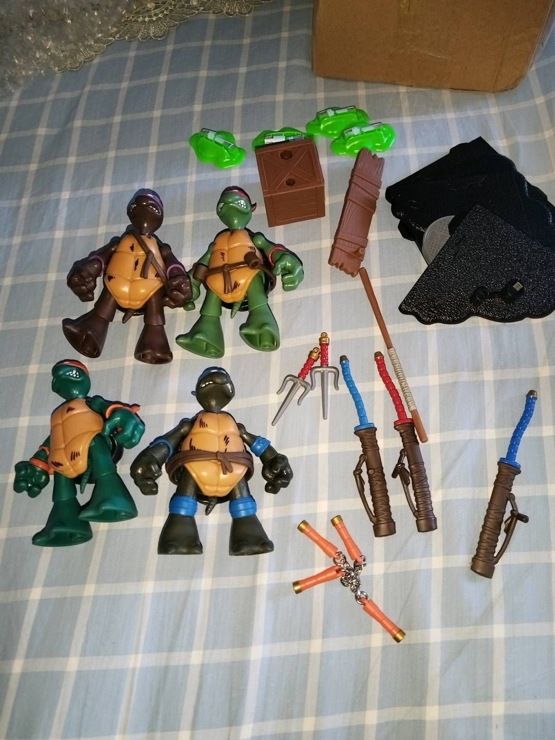 彩星2023忍者神龟6寸40周年初代,蓝色莱昂纳多,红色拉斐尔,橙色米开朗基罗,紫色多纳泰罗,全配件有地台,染变剂,武器,木箱等