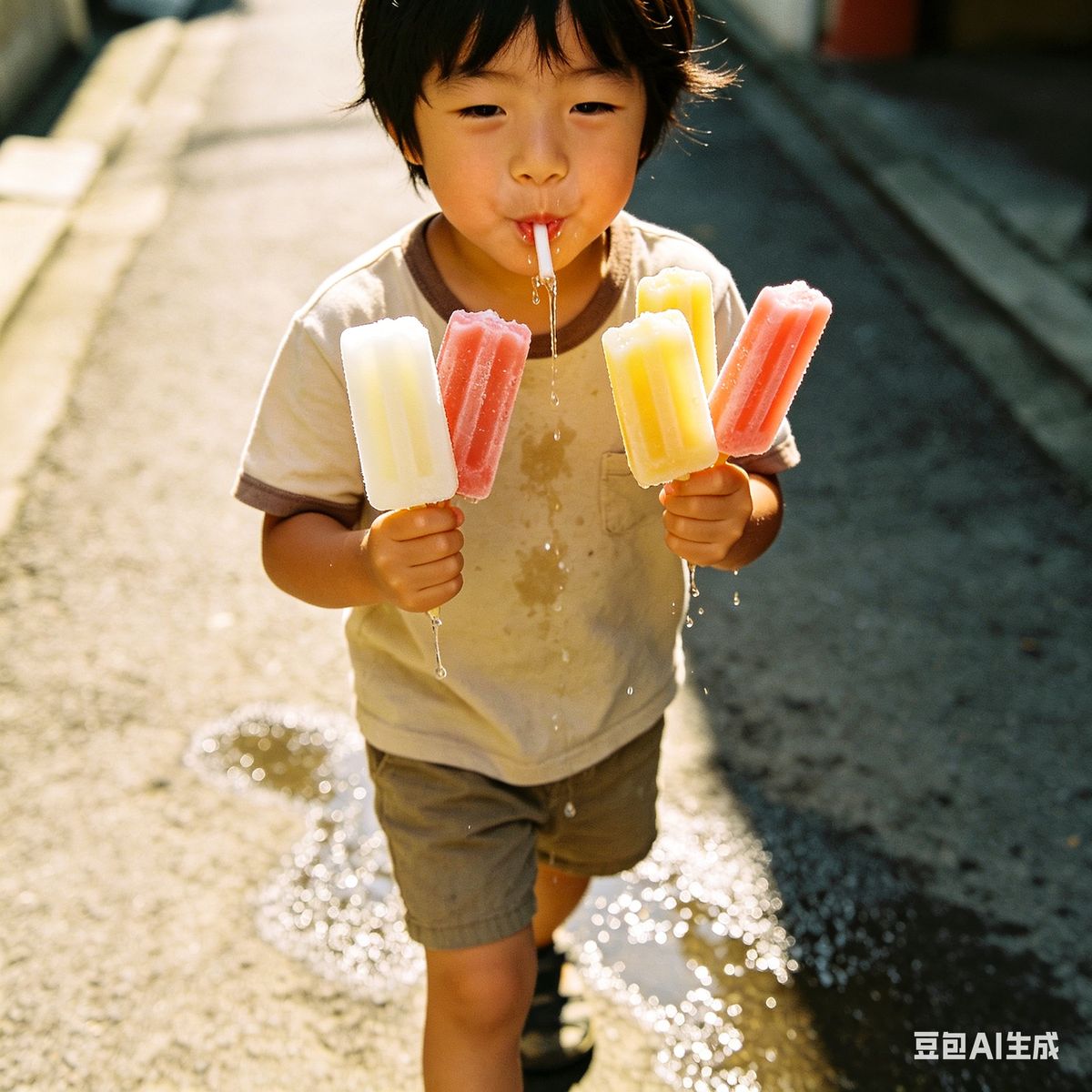 90年拿1毛钱买黄色冰棍,2分一个,老板找不开钱,于是两手拿5根,边走边吸边流,哈哈