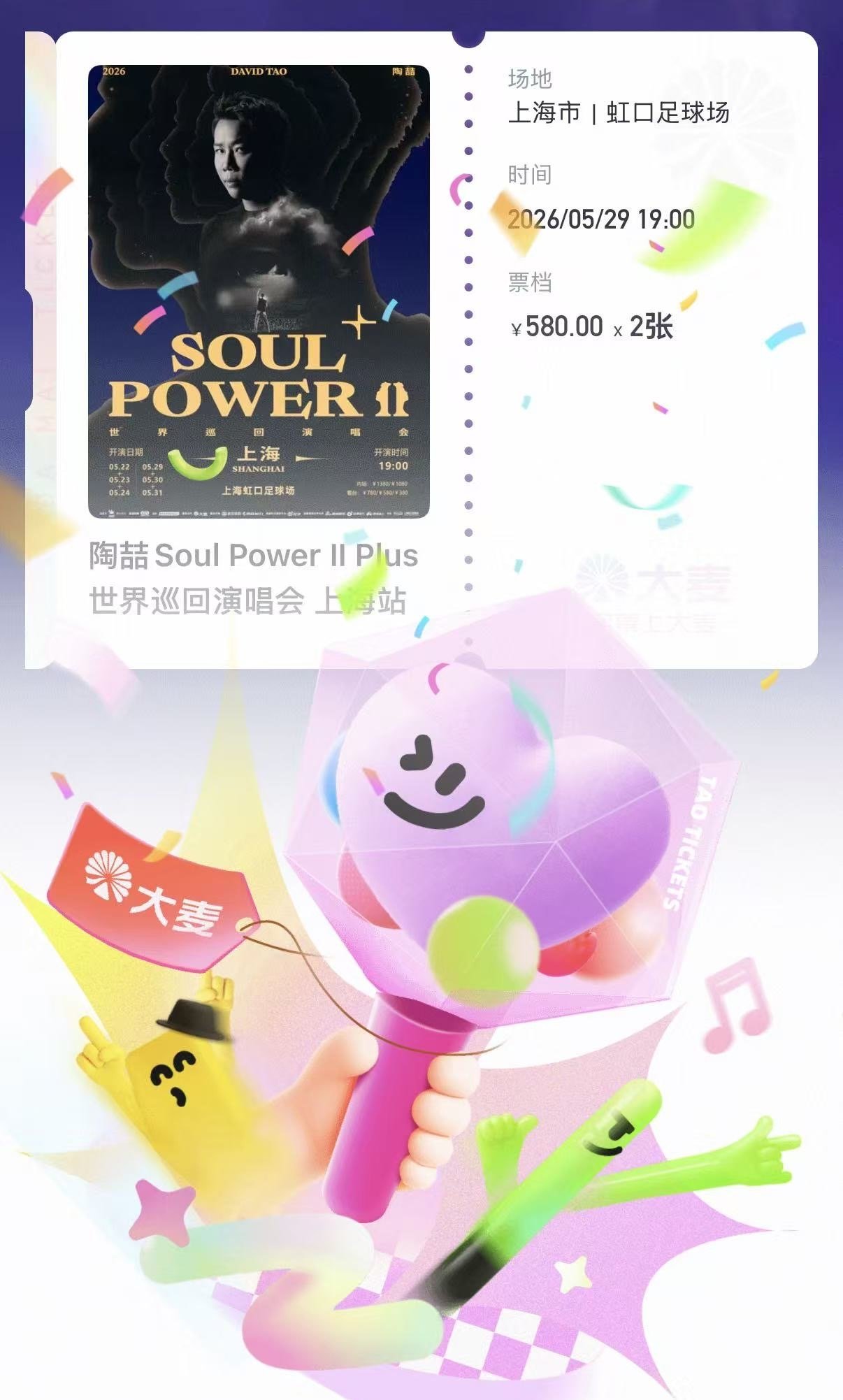 我又来每日打卡了 昨天抢到了陶喆演唱会门票