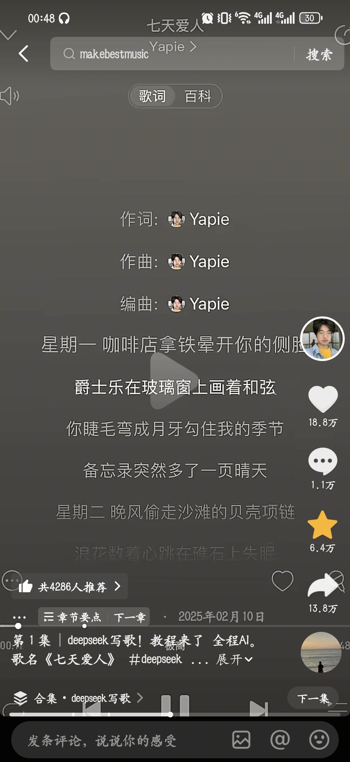 2026年4月15日,今天做了很多,参加了碳基圈任务,做了人生中第一首音乐,很满足,感谢Yapie!
